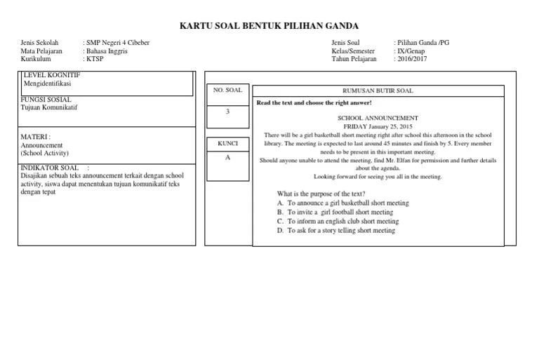 Soal Pilihan Ganda Announcement - Kumpulan Soal Bahasa Inggris Kelas 12 Smk Terbaru Bagian 5 Dan Jawabannya Griyachumaidi Com / Contoh soal pilihan ganda announcement bintang songo contoh soal announcement rpp 2013 contoh soal bahasa inggris english kelas 7 smp dan mts 15 contoh soal announcement text dan kunci jawaban terbaru pdf contoh soal bahasa inggris kelas 7 smp dan mts dian contoh soal uts bahasa inggris semester 1 kelas 10.
