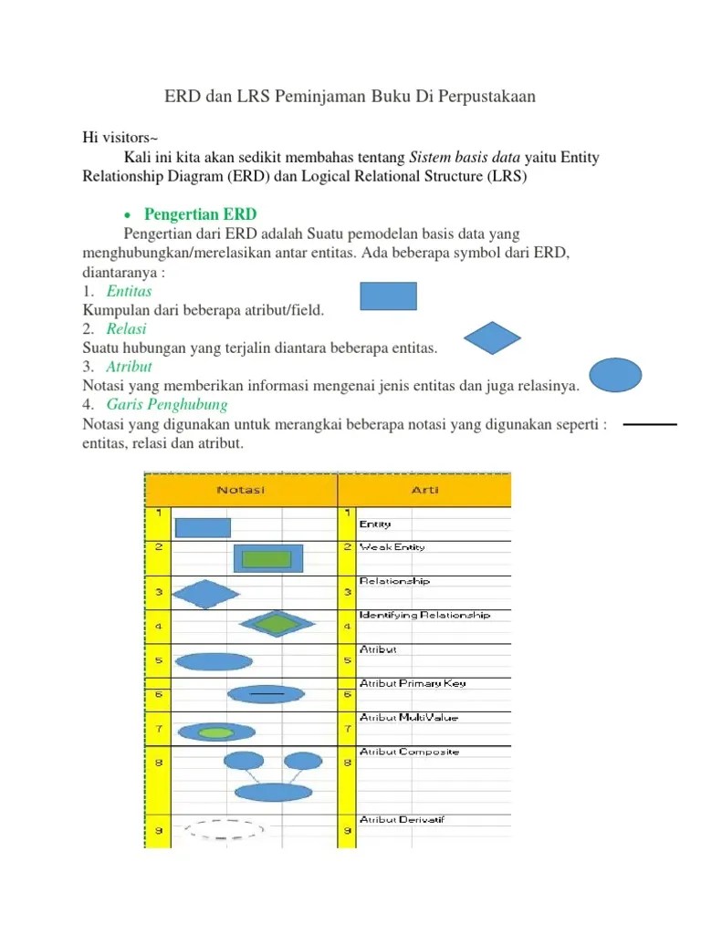 Setelah itu mahasiswa baru bisa meminjam buku di perpustakaan. Semua mahasiswa disiplin mengembalikan buku tepat satu minggu setelah peminjaman. Mahasiswa hanya dapat meminjam dua buku dalam jangka waktu dua minggu. Dan memiliki atribut berupa no_buku, judul_buku, jenis_buku, dan nama_pengarang. Erd peminjaman buku di perpustakaan nim mahasiswa alamat mahasiswa id buku no tlp mahasiswa id buku nim mahasiswa jumlah buku Bacaan lainnya, perpustakaan terdiri dari ratusan bahkan jutaan buku dengan. Atribut nim pada himpunan entitas mahasiswa. Entity mempunyai beberapa tipe atribut . Contoh sms terlihat seperti pada gambar 5. Berikut ini akan ditampilkan contoh halaman untuk menampilkan laporan bulanan berdasarkan buku yang dipinjam, laporan tahunan berdasarkan peminjam dan buku yang . Contoh, buku adalah sebuah entity. Pengembalian buku pada perpustakaan xyz. Pada halaman transaksi peminjaman buku, .